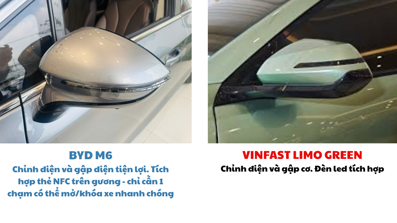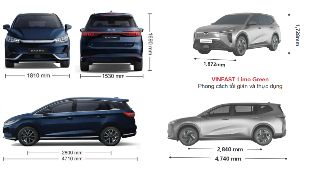 | Hạng mục | BYD M6 | VINFAST Limo Green |
