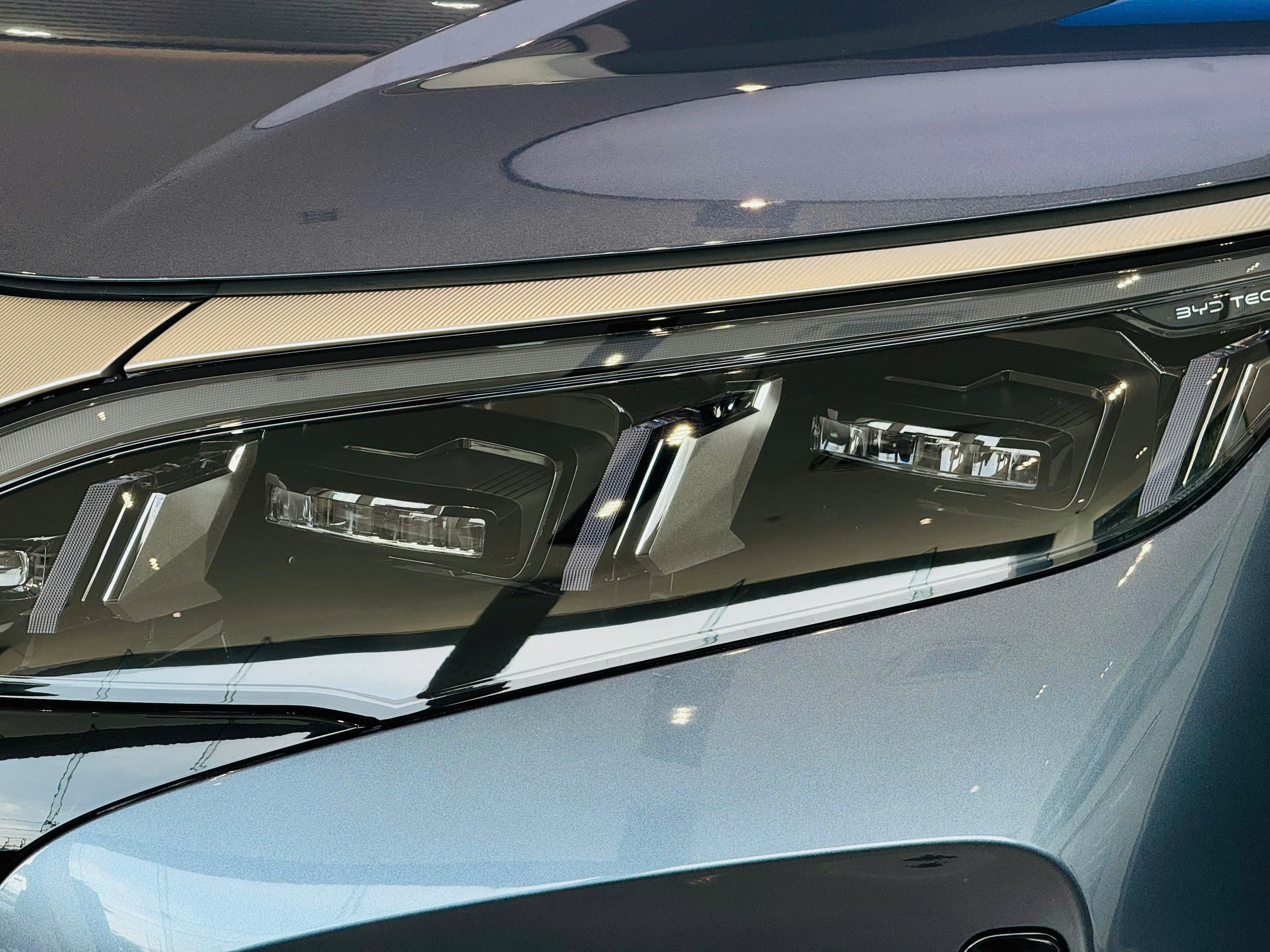 Phần đầu xe BYD M9 nổi bật với lưới tản nhiệt khép kín đặc trưng của xe điện, kết hợp cùng các đường viền mạ chrome tinh tế. Cụm đèn trước LED Matrix siêu mảnh, nối liền bằng dải LED daylight hiện đại, mang đến diện mạo thời thượng và sắc sảo.