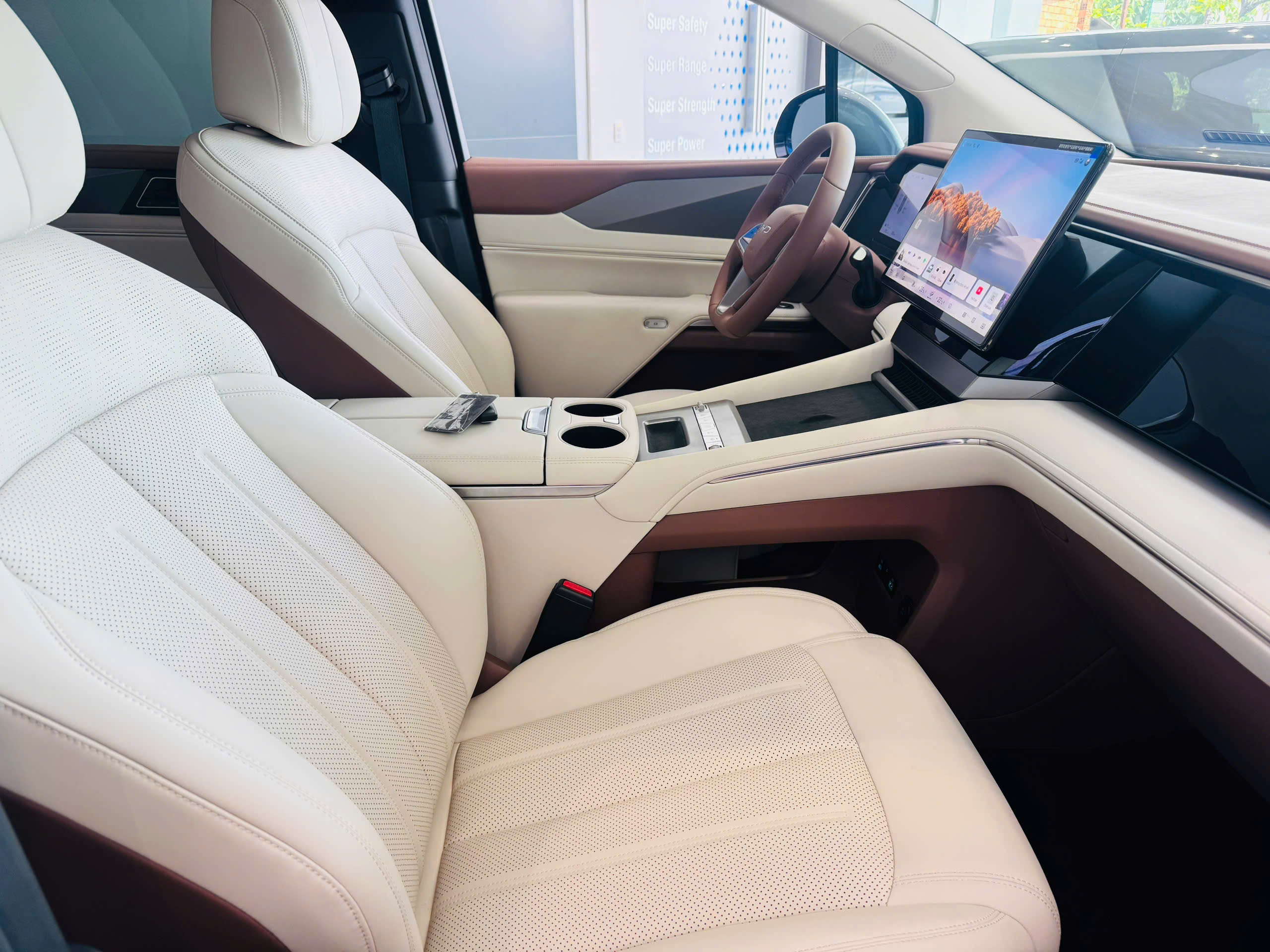 Bước vào khoang cabin, BYD M9 mang đến trải nghiệm sang trọng bậc nhất trong phân khúc MPV điện. Không gian rộng rãi nhờ trục cơ sở dài 3.200 mm, cùng thiết kế 3 hàng ghế bố trí khoa học, đảm bảo sự thoải mái cho mọi hành khách.