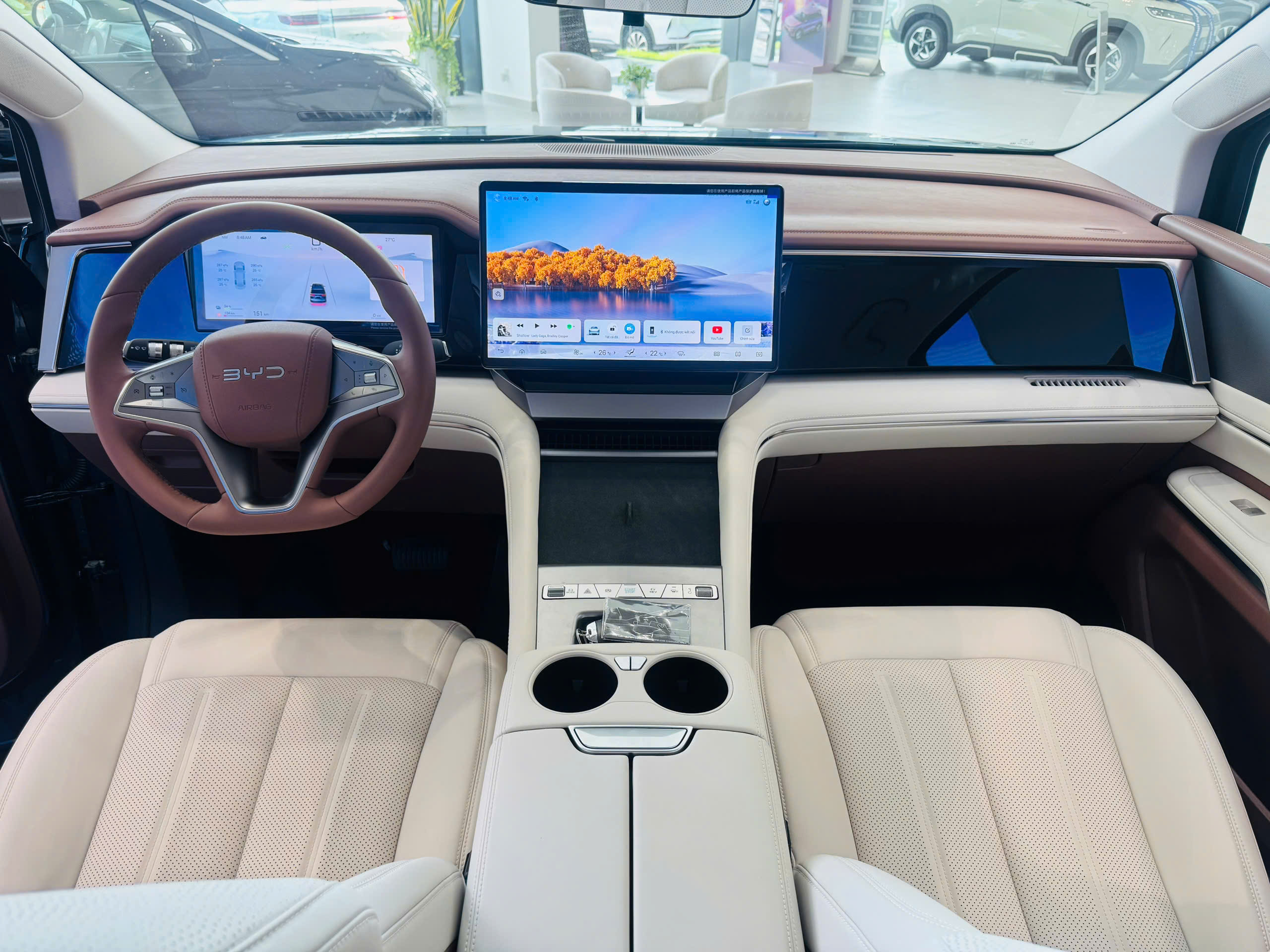 Khoang lái được thiết kế theo phong cách tối giản – hiện đại, nổi bật với màn hình giải trí trung tâm cỡ lớn xoay dọc/ xoay ngang linh hoạt, kết nối thông minh với hệ sinh thái BYD. Đồng hồ kỹ thuật số Full LCD sắc nét, kết hợp màn hình HUD hiển thị trên kính lái, mang lại trải nghiệm trực quan cho người lái.